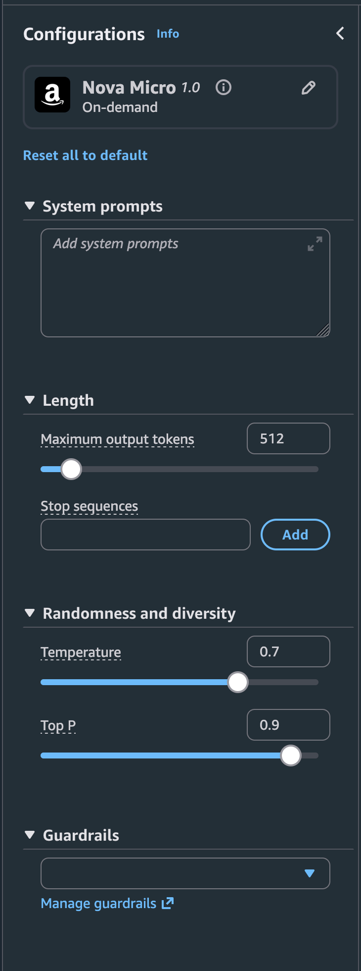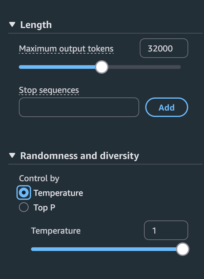 - Regarding the model configuration parameters, I noticed they are slightly different from Amazon’s. For example, there is an option to add reasoning: