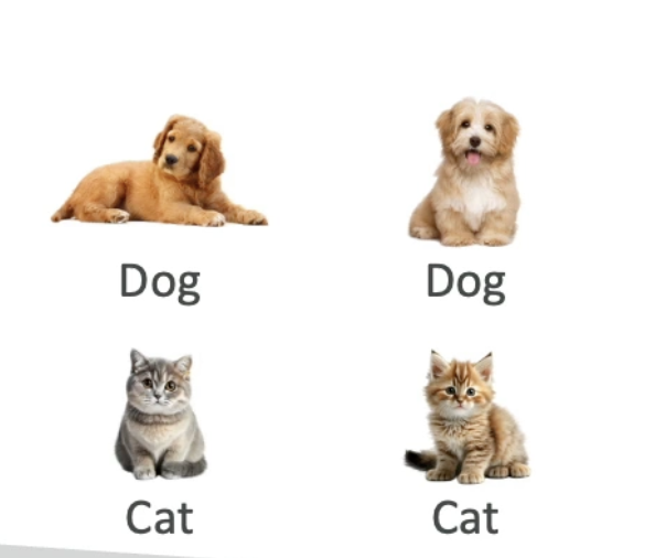 - Example: photos of cats labeled “cat”, photos of dogs labeled “dog”