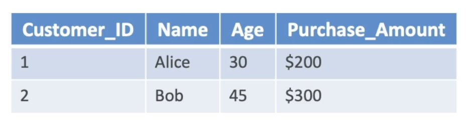 - Example: customer age, income, purchase history